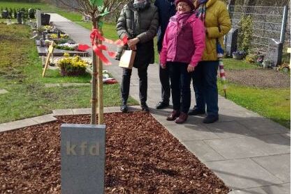 Die kfd St. Antonius pflanzte ihren gespendeten Amberbaum auf dem Dorffriedhof, als Zeichen für unsere christliche Gemeinschaft in unserer Gemeinde.
