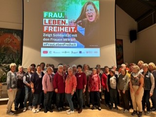 Auf der vergangenen Regionalversammlung am Do, 27. Oktober 2022, haben die Teilnehmerinnen an der Kampagne "Frau. Leben. Freiheit" teilgenommen und damit ein deutliches Zeichen der Solidarität für Iraner*innen gesetzt.