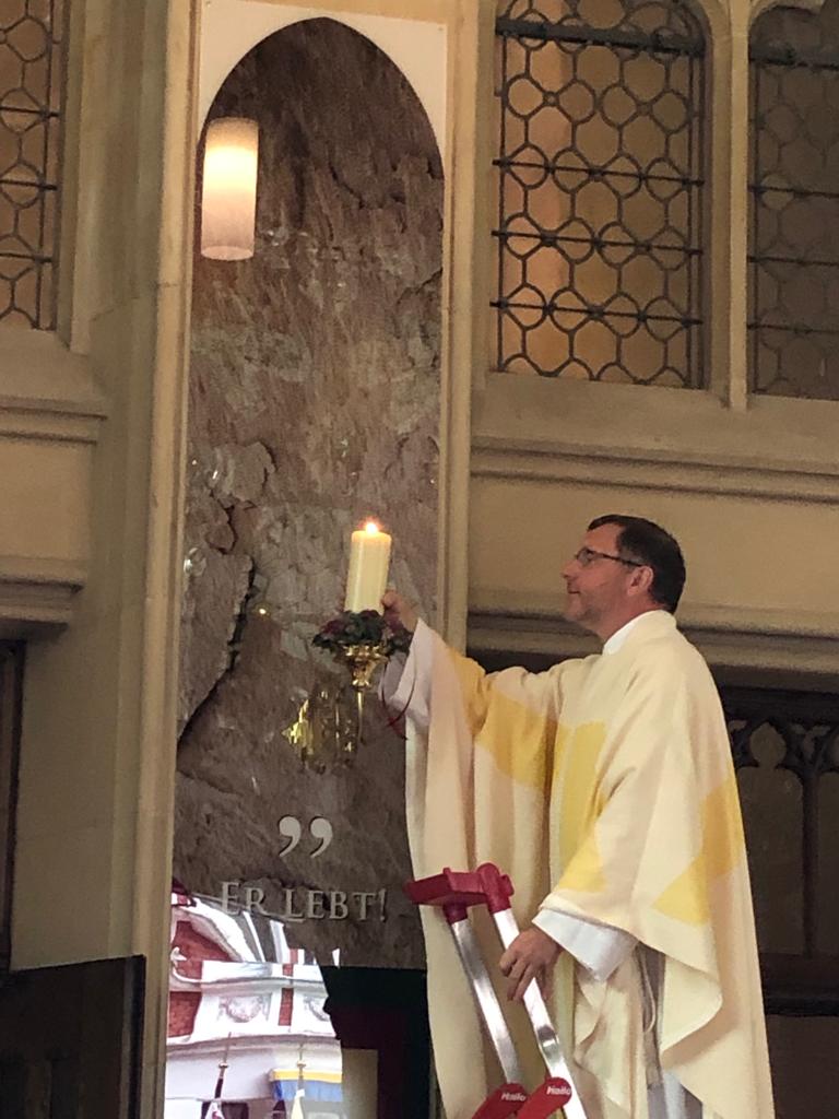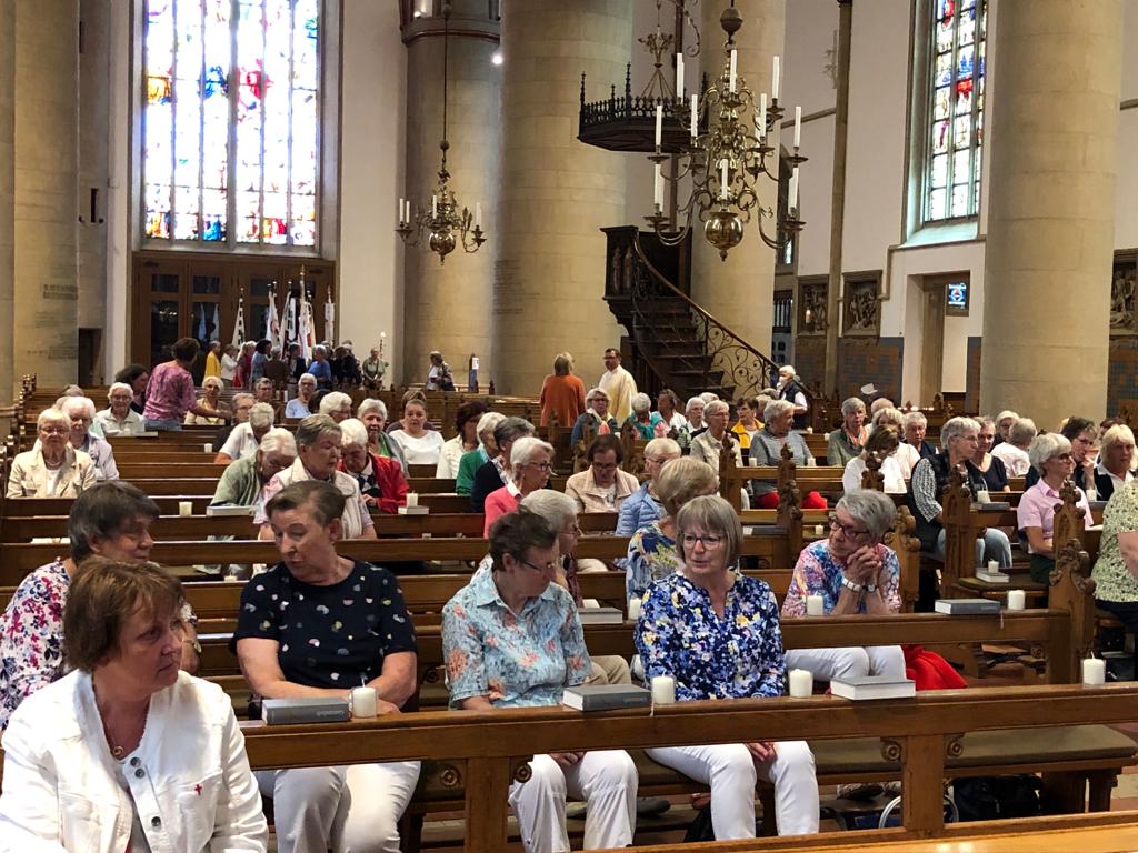 Auf Anregung der kfd Region Lüdinghausen wurde dieser Leuchter in einem feierlichen Gottesdienst unter großer Beteiligung aller örtlichen kfd-Teams mit ihren Bannerabordnungen von Pfarrer Benedikt Elshoff gesegnet.